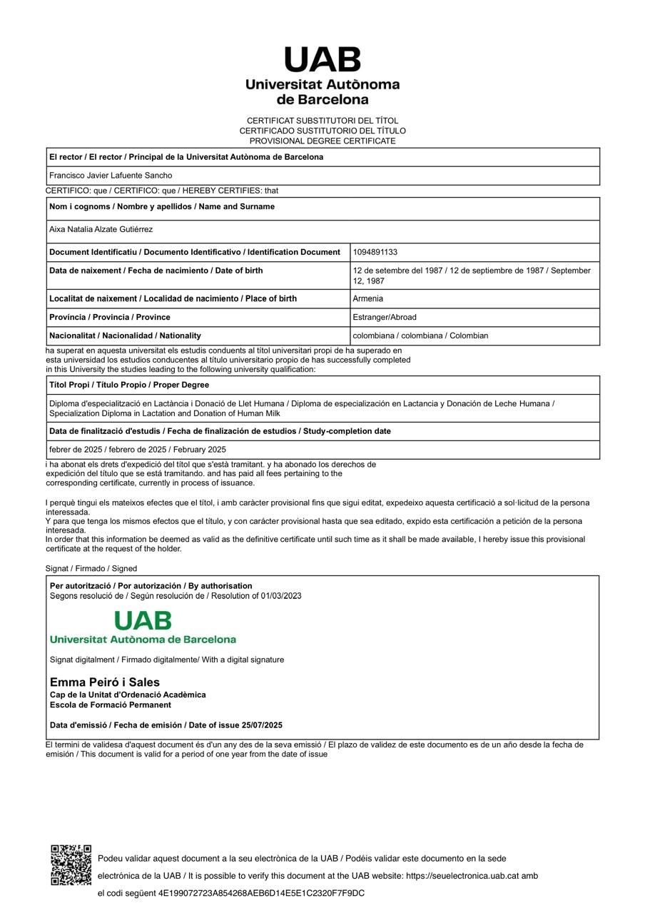 - Postgrado lactancia materna y donación de leche humana Universidad Autónoma de Barcelona